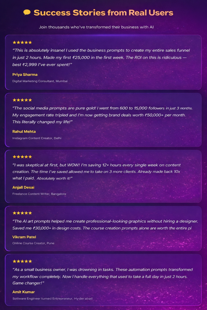 Unlike random free prompts, this ebook contains tested, structured, and practical prompts that are organized for real-world use and actual results.